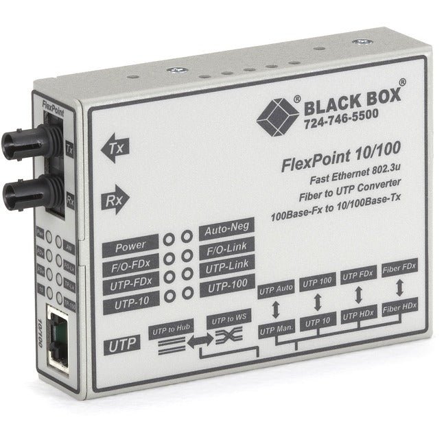 FlexPoint™ Converters from Black Box are versatile and cost-effective standalone converters that you can upgrade to a chassis-based system. They provide the ultimate in flexibility and reliability for your expanding multimedia LAN.